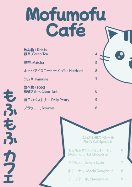 A fictional lifestyle café combining Japan’s love of cats and coffee. Offering a manga library, speciality drinks/snacks, adoptable cats and merch targeted towards tourists, Gen Z/young creatives and kawaii culture fans.